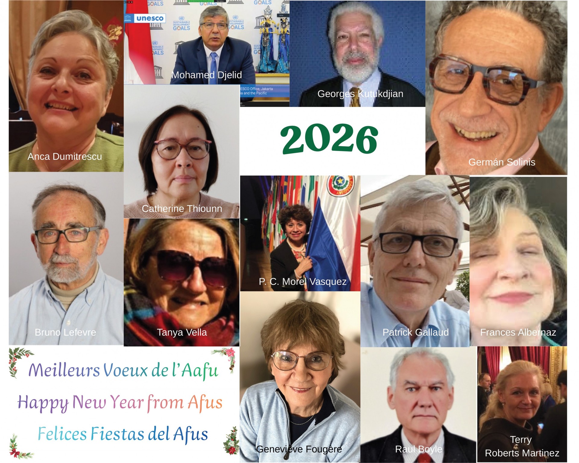 Meilleurs vœux de l'Aafu. Happy New year from Afus. Felices Fiestas del Afus